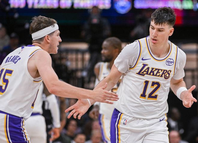 首节比赛森林狼率先发力,兰德尔三分与迪温琴佐后撤步三分连中,搭配麦克丹尼尔斯的得分打出9-0高潮。湖人多点回应,克内克特高效输出,但森林狼凭借火热手感保持领先。次节里夫斯开启统治模式,得分助攻一肩挑盘活进攻,湖人趁机反超比分。森林狼命中率骤降,仅靠兰德尔连续得分止血,半场结束湖人以62-58领先4分。