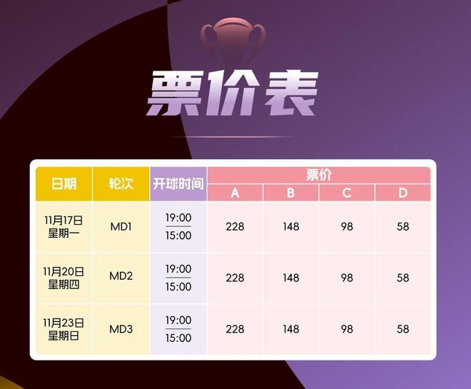 11月17日,2025-2026女足亚冠小组赛将在汉口文体中心拉开序幕。为方便广大球迷观赛,组委会设置了多档票价,以满足不同观众的需求。小组赛门票分为A、B、C、D四个等级,价格区间为58元至228元。球迷可登录官方指定售票平台大麦网选购球票。